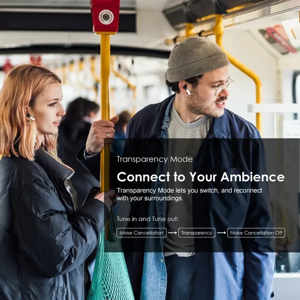 استمع وانعزل: إلغاء الضوضاء النشطة → وضع الشفافية → إيقاف إلغاء الضوضاء